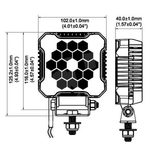 Faro de trabajo de 18 leds con capacidad de 2.800 lúmenes y potencia de 26 W. Lente de PC y carcasa de aluminio. Dunciona a 12/24 V y tiene unas medidas de 102 x 125 x 40 mm de profindidad.