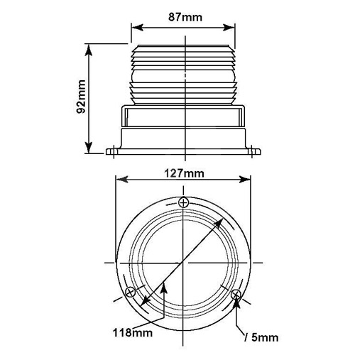 Rotativo rubular flexible. Funciona con bombillas H1 a 12 voltios . Tiene unas medidas de 270 mm de altura y 10 mm de diámetro en la parte superior.