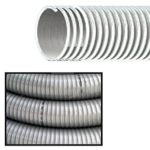El tubo de la manguera es de material superelástico, fuerte flexible y liso con refuerzo de espiral de PVC resistente al choque. El exterior de la manguera es coarrugado, muy resistente a la intemperie, abrasión y agentes químicos.