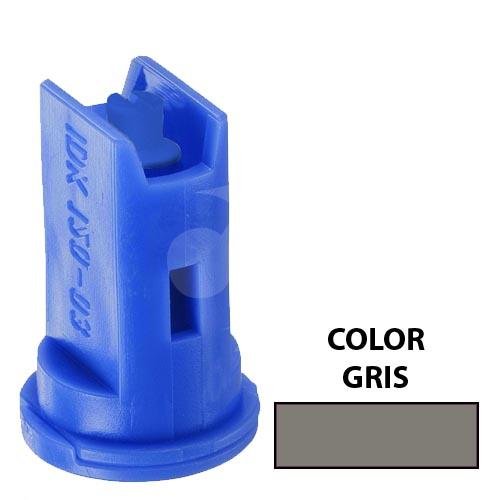 Boquilla antideriva IDK de 120º. De muy buena estructura de deposición y penetración de cultivos. De 1,5 a 6 bares de presión. Utiliza tuerca bayoneta referencia 289. De color gris.