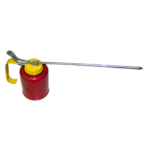 Aceitera de mano para el engrase de maquinaria ligera. De metal y con capacidad para 500 ml. Resistente y cómoda de utilizar. Las longitud de su cañ